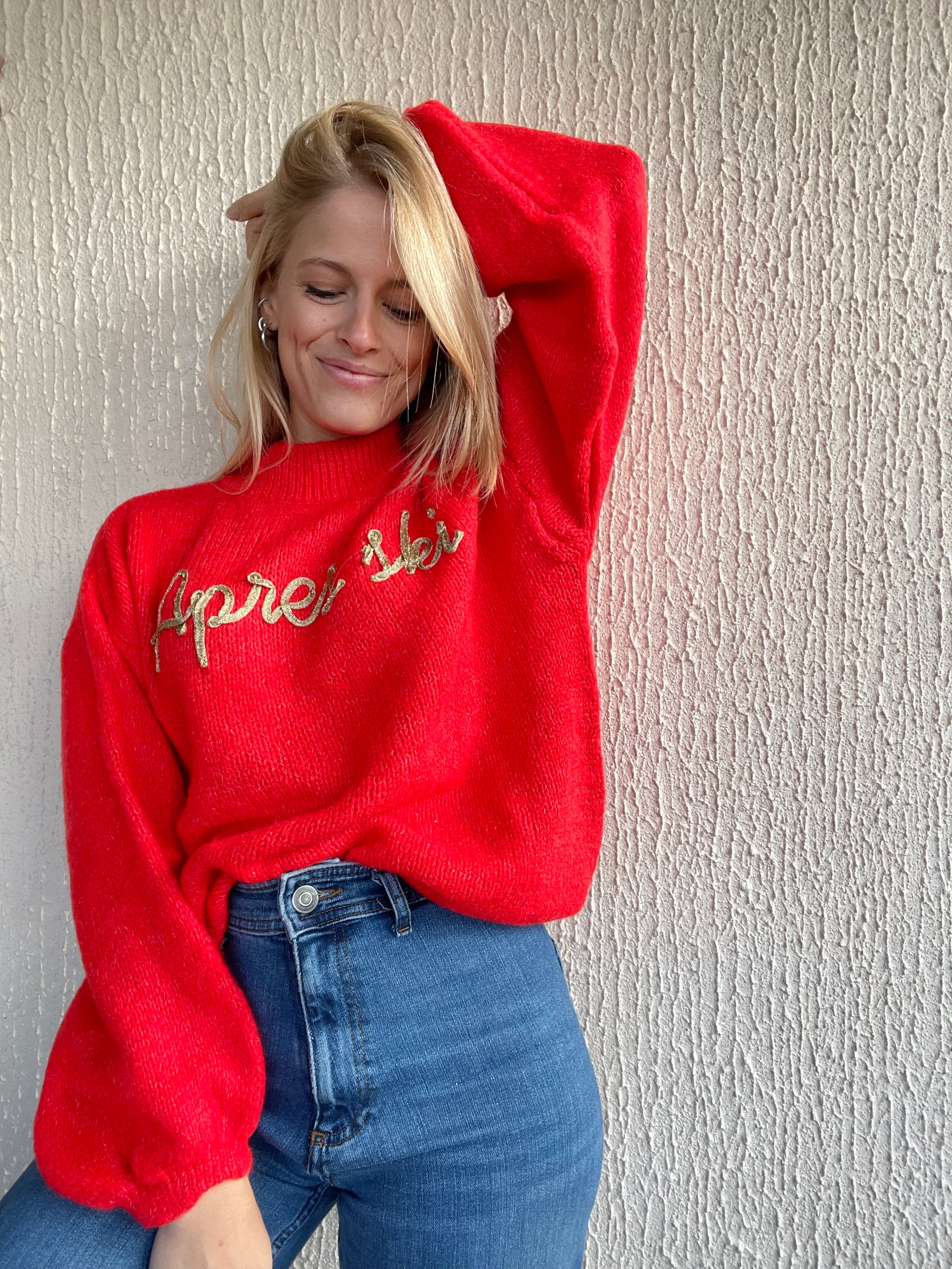 Maglioncino in misto lana, con scritta oro in rilievo.