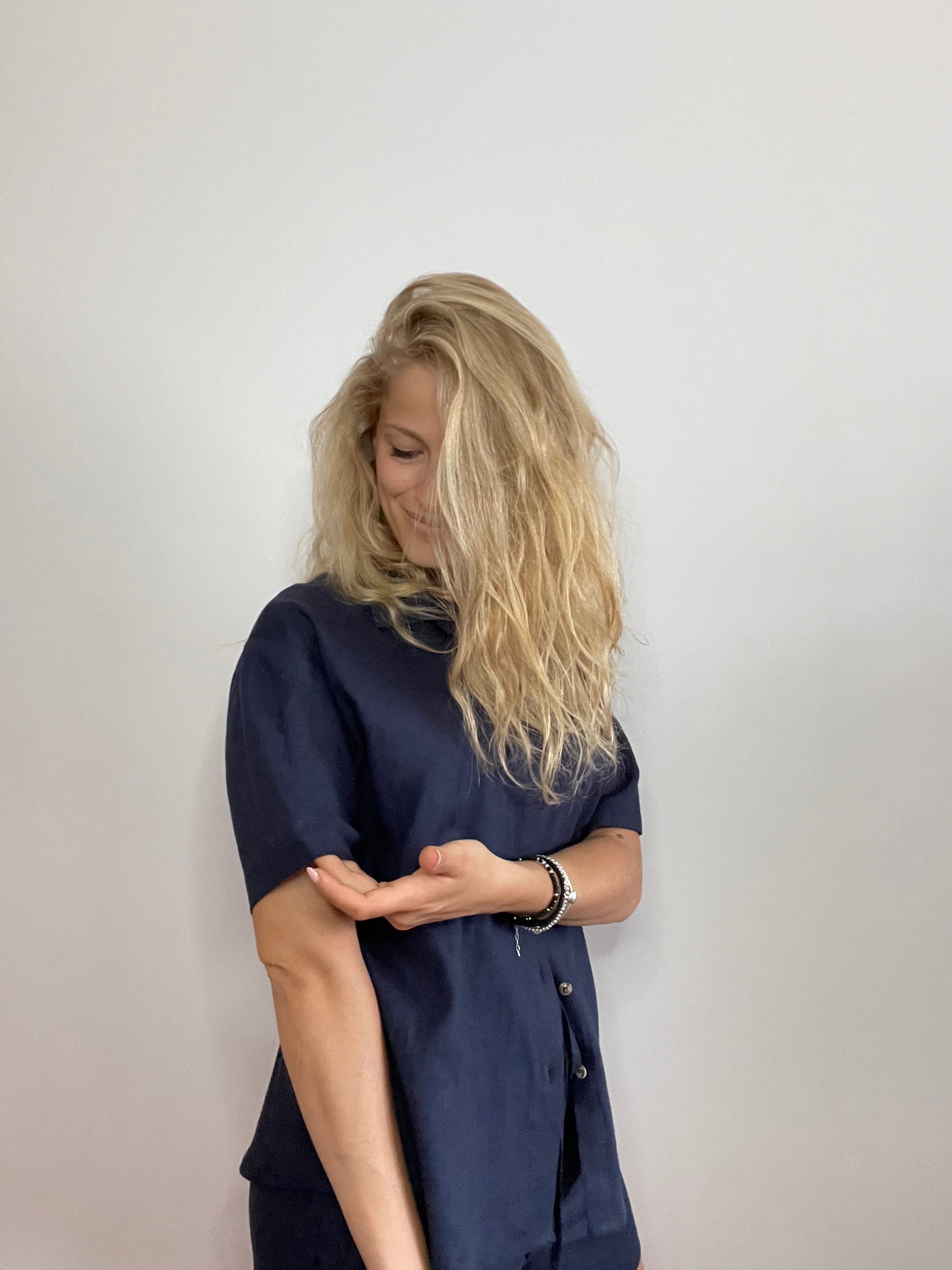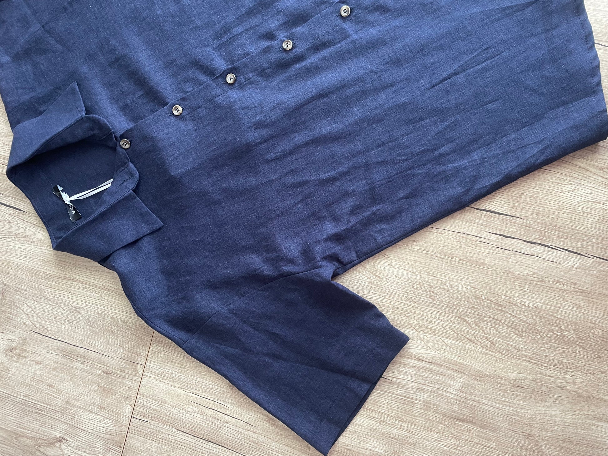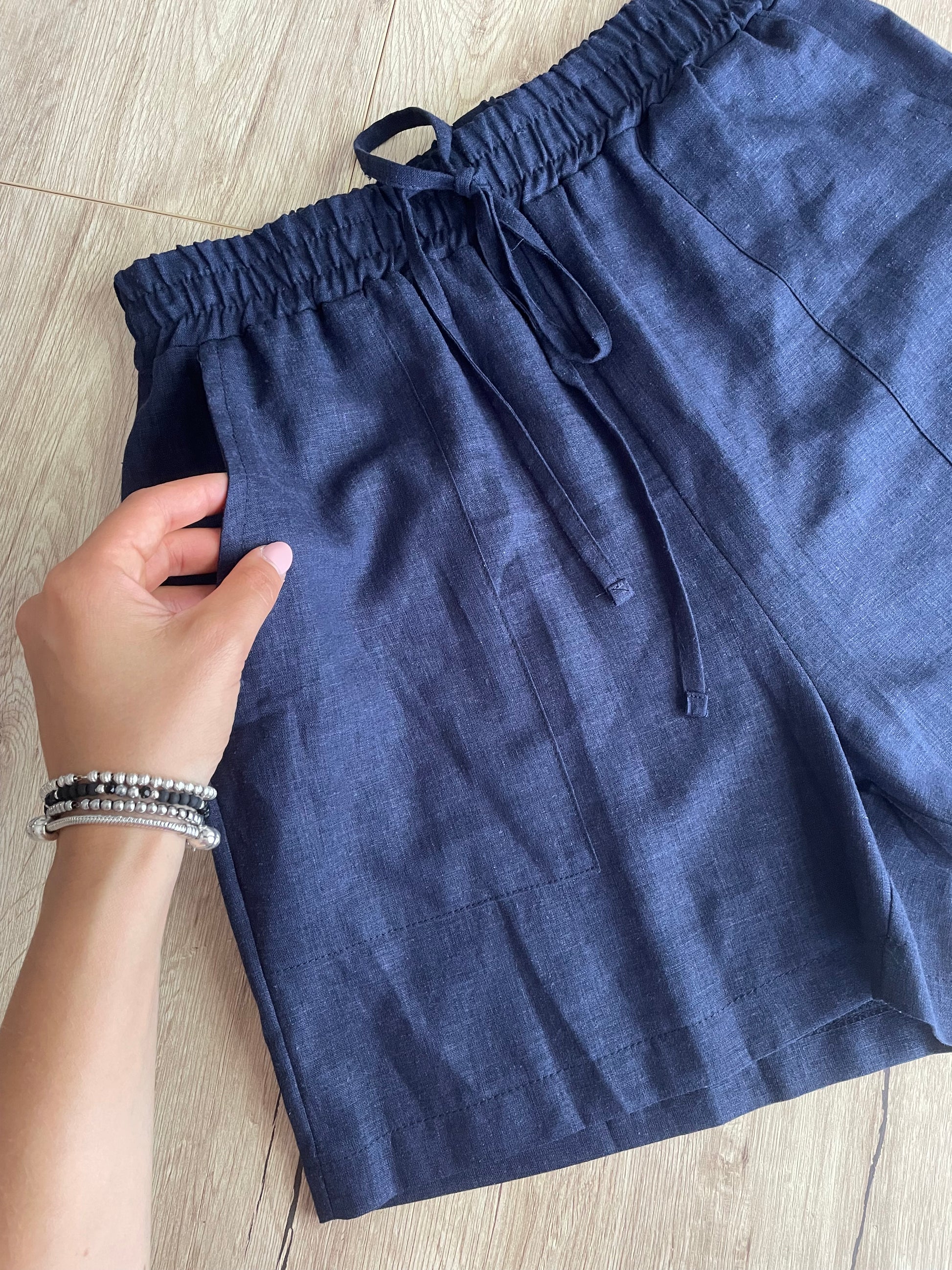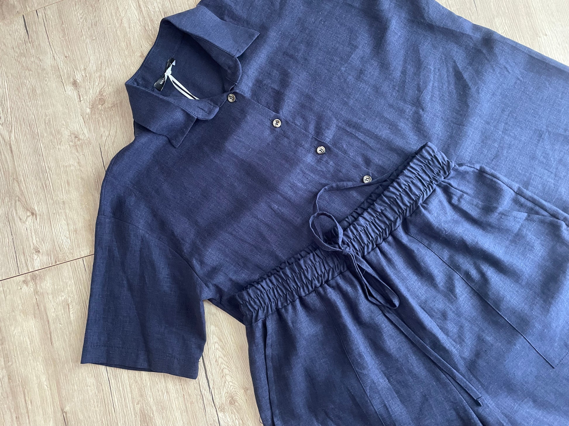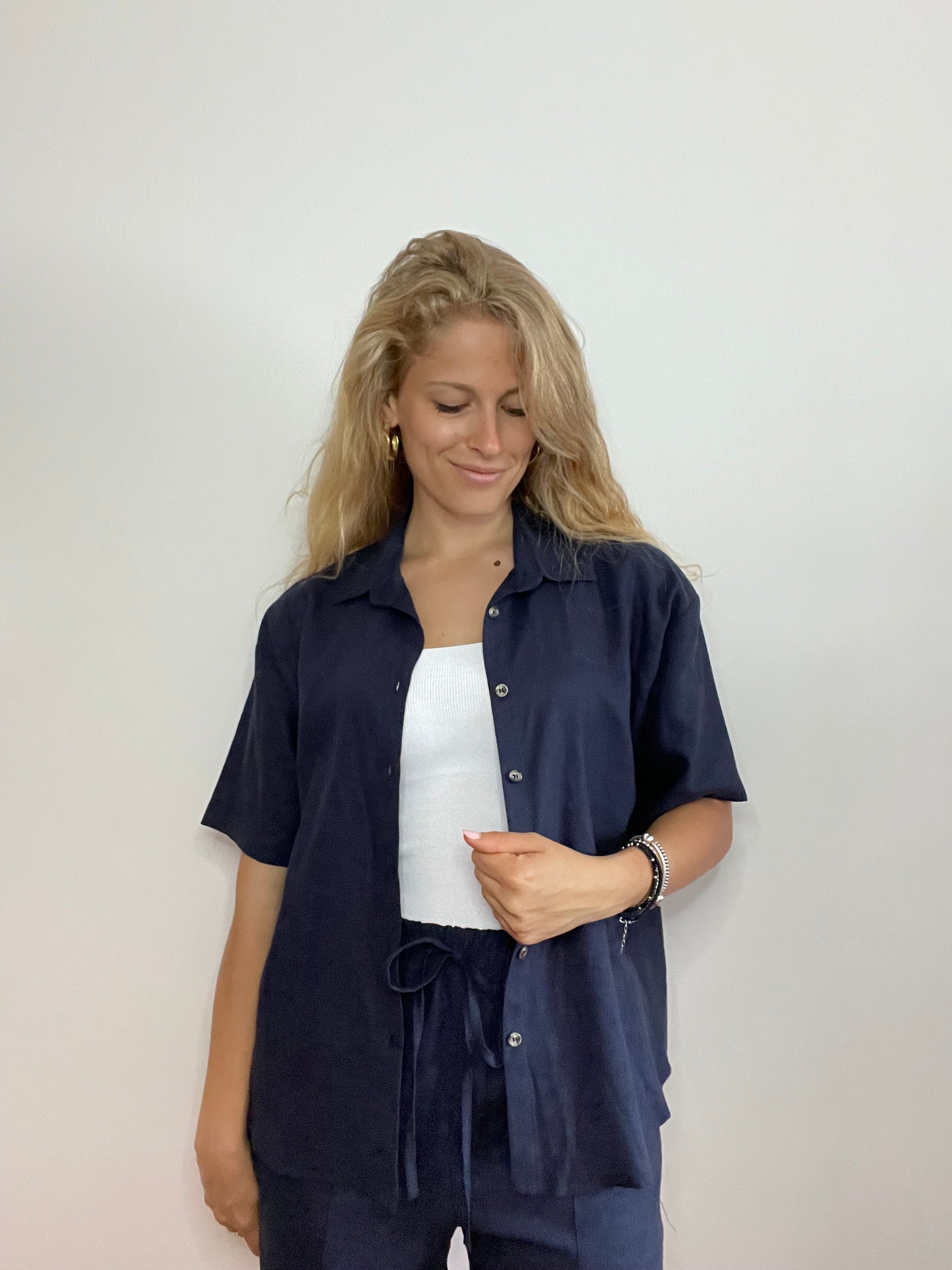 Completo in misto lino, composto da camicia mezza manica e pantaloncino.
