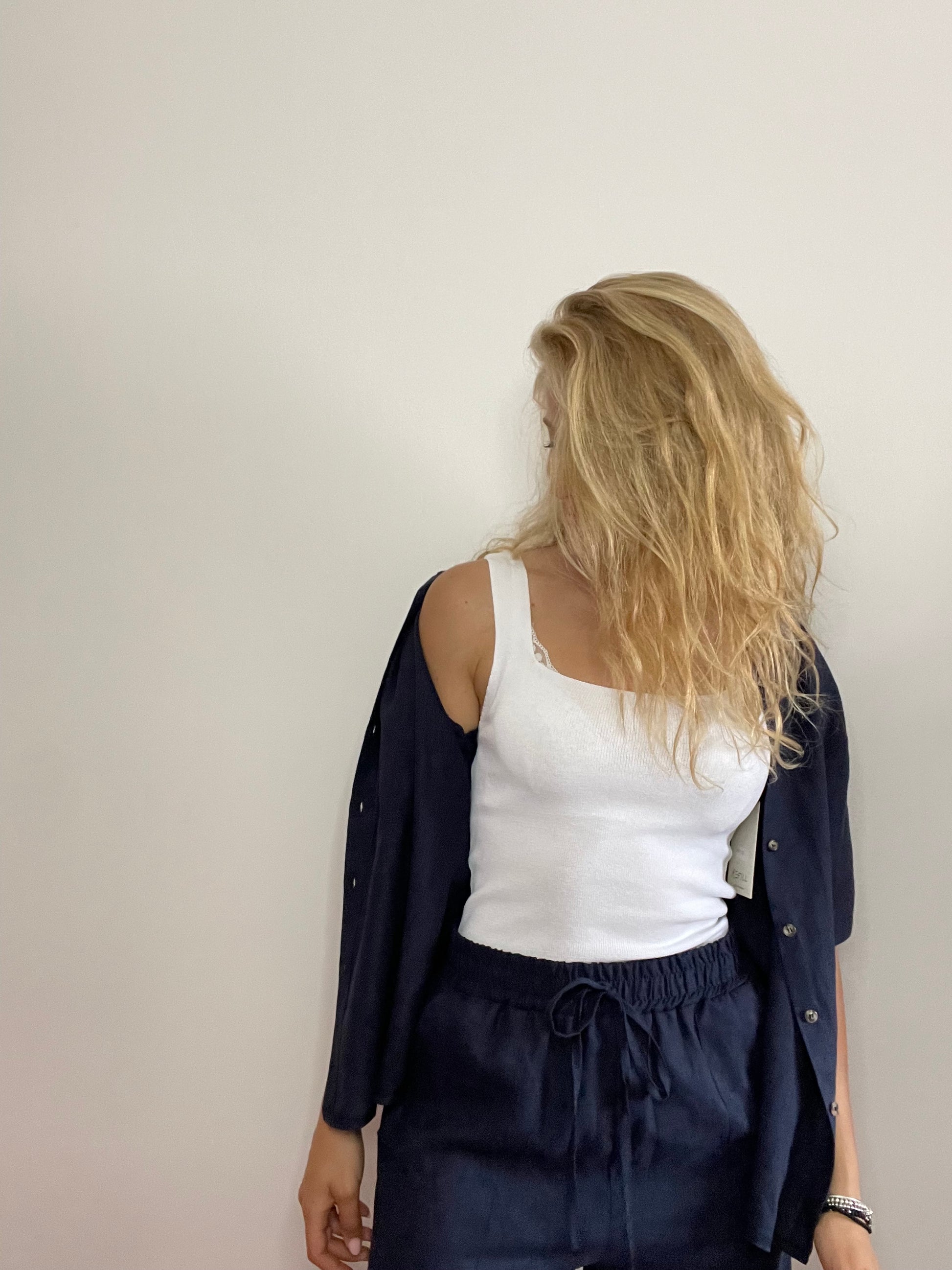 Portalo con la camicia chiusa o camicetta aperta con sotto una canotta (nella foto vedi la nostra CANOTTA ARIA).