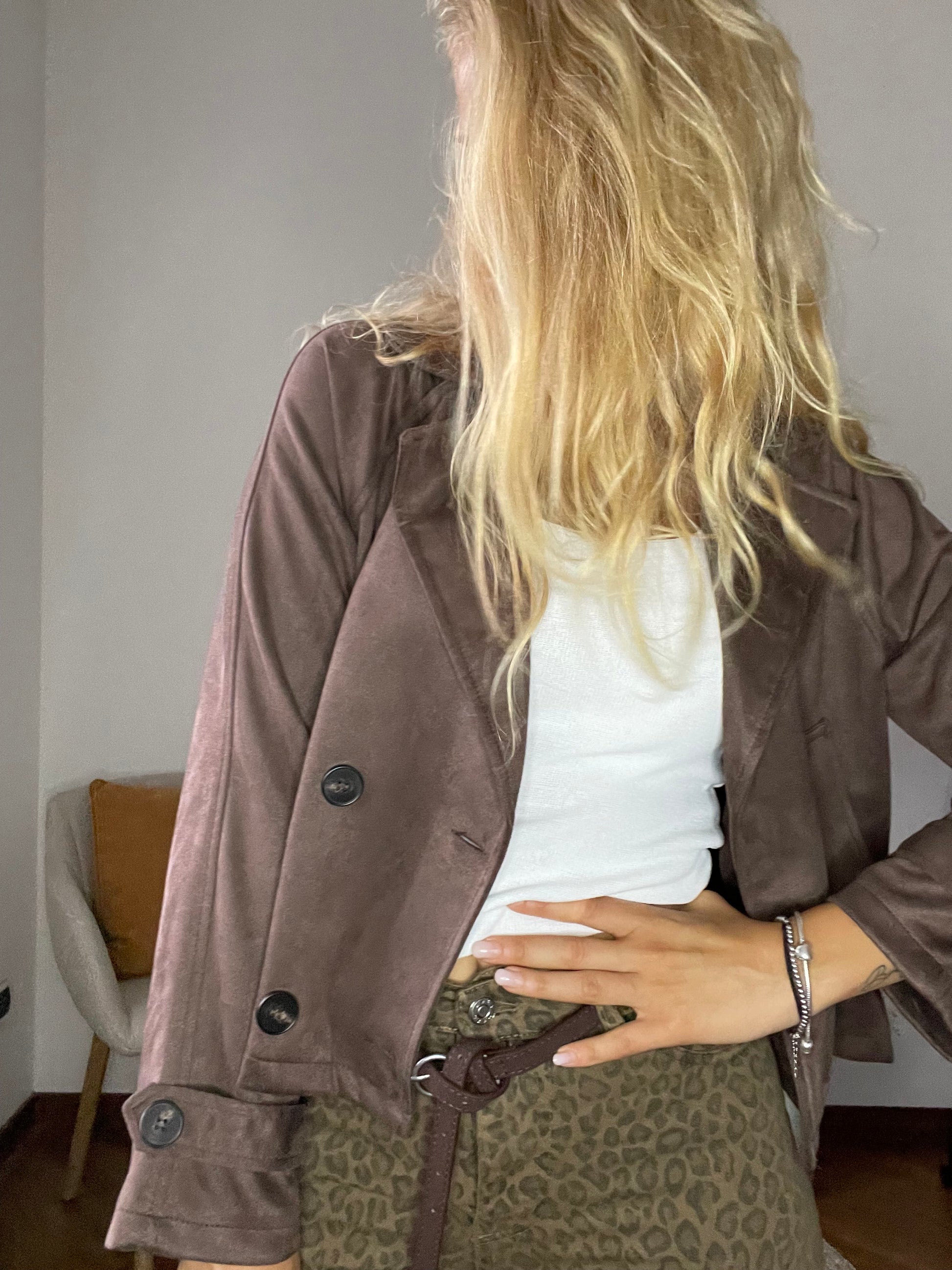 Giacchino corta, modello doppio petto in suede (tessuto effetto scamosciato, molto morbido).