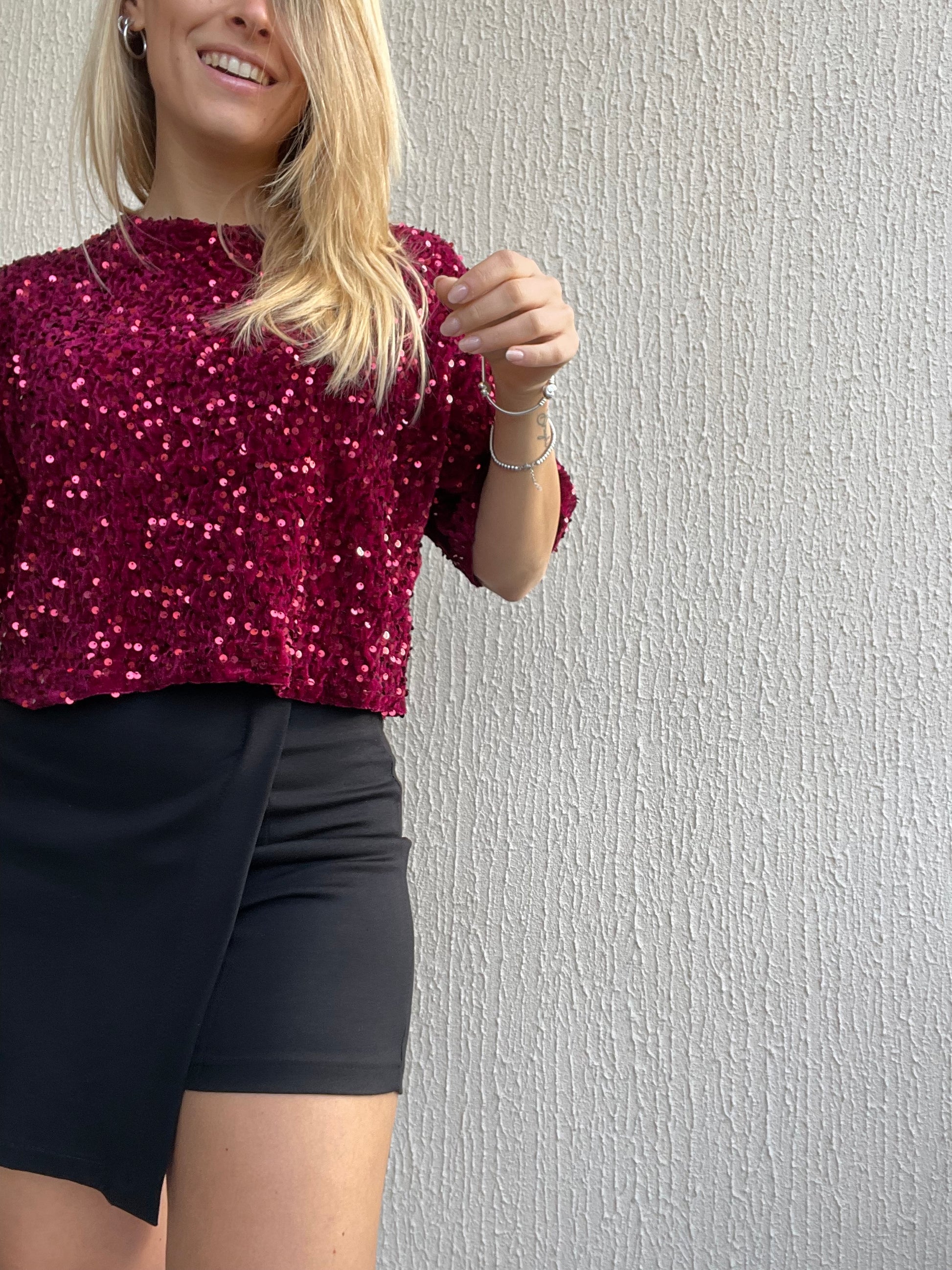 Maglia in paillettes, foderata all’interno per maggior comfort sulla pelle.