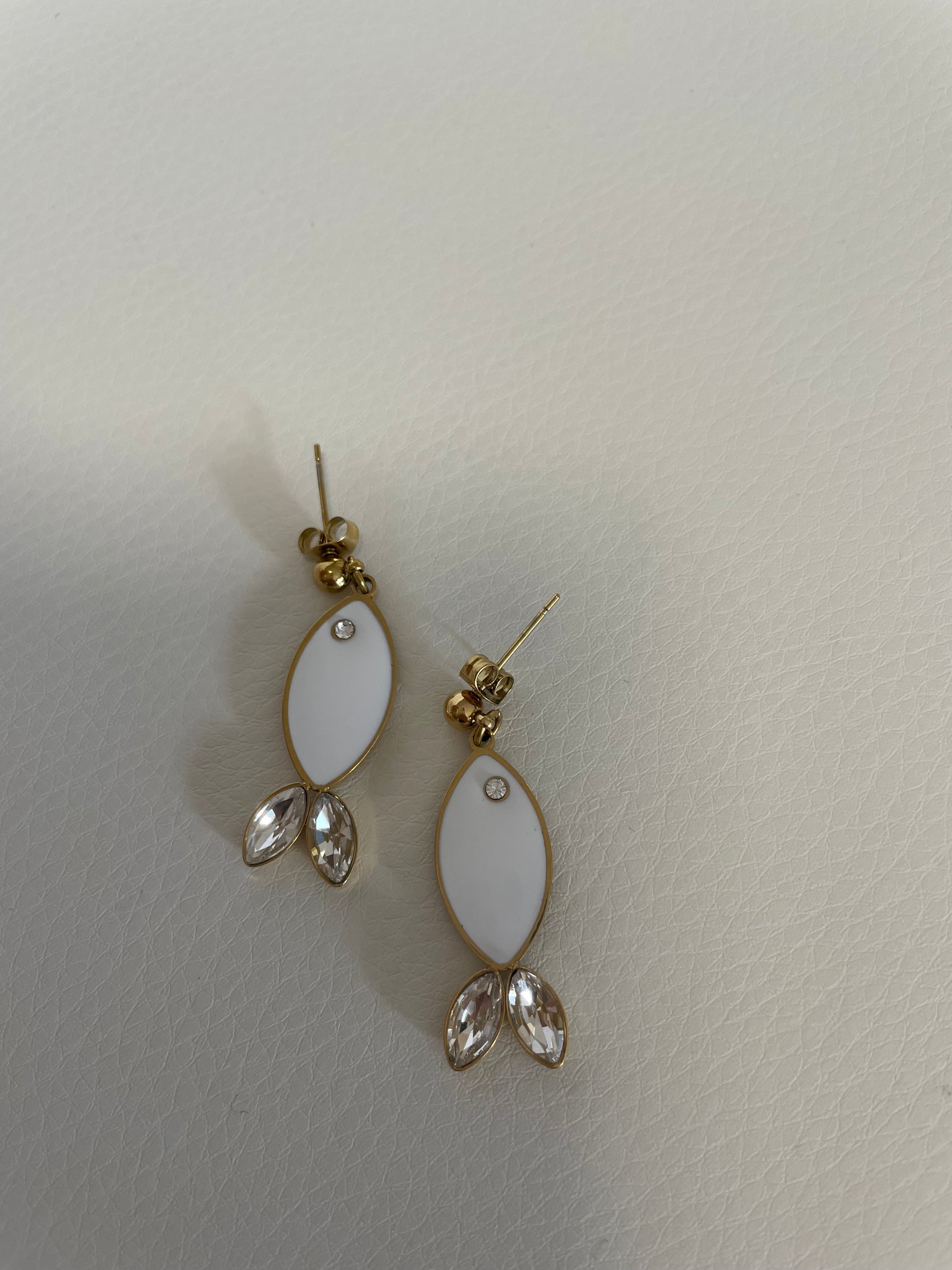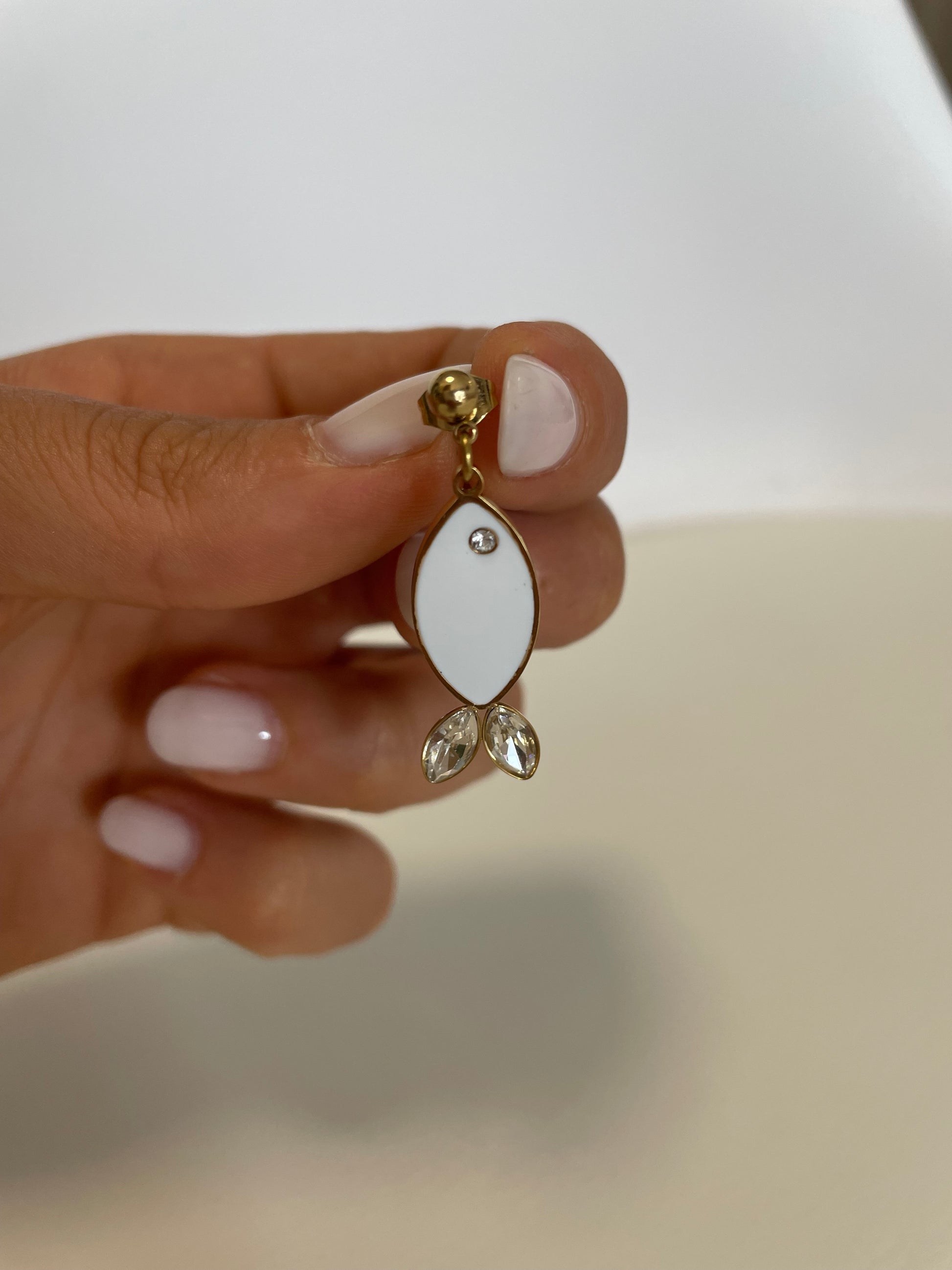 Orecchini pesciolini, base oro, e placcati bianchi.