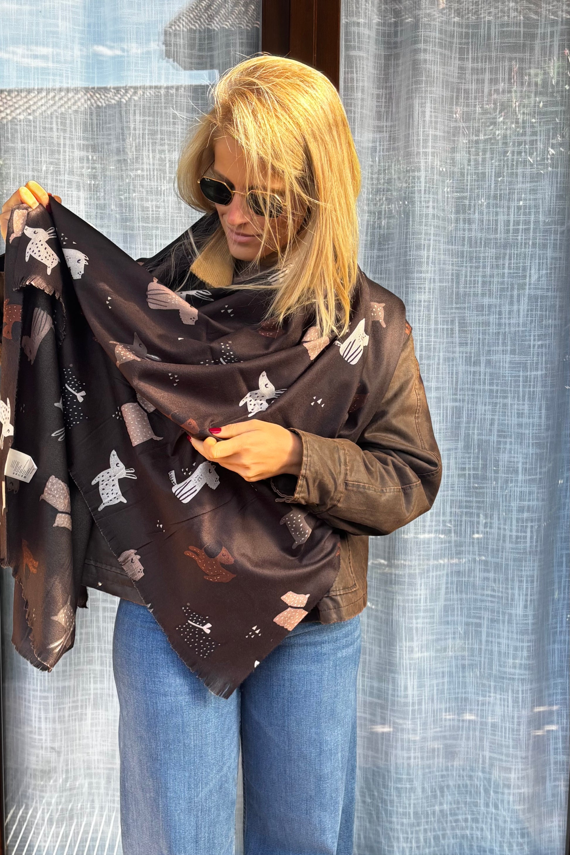 Sciarpa sfondo scuro con stampa simpatica vani.
